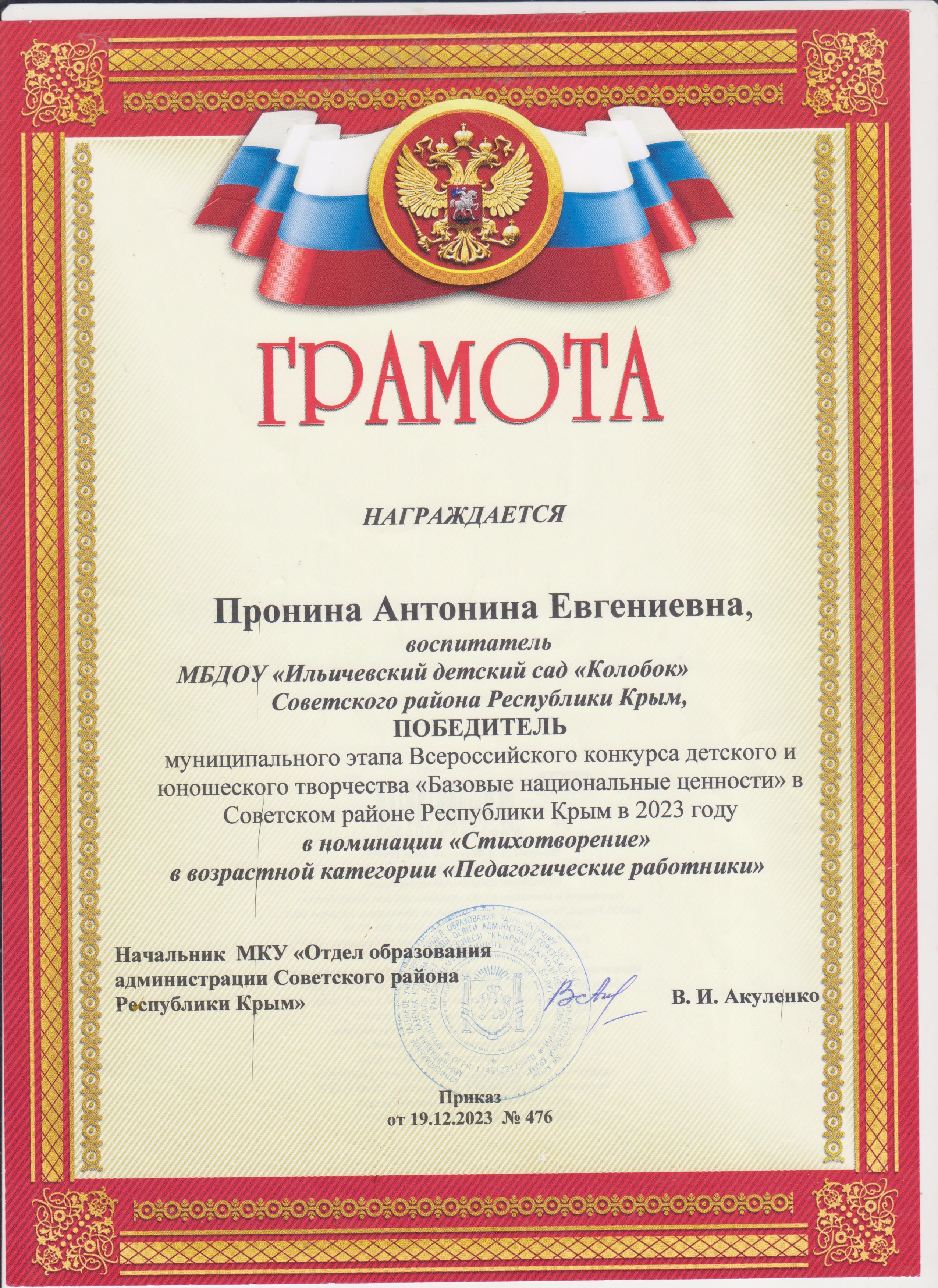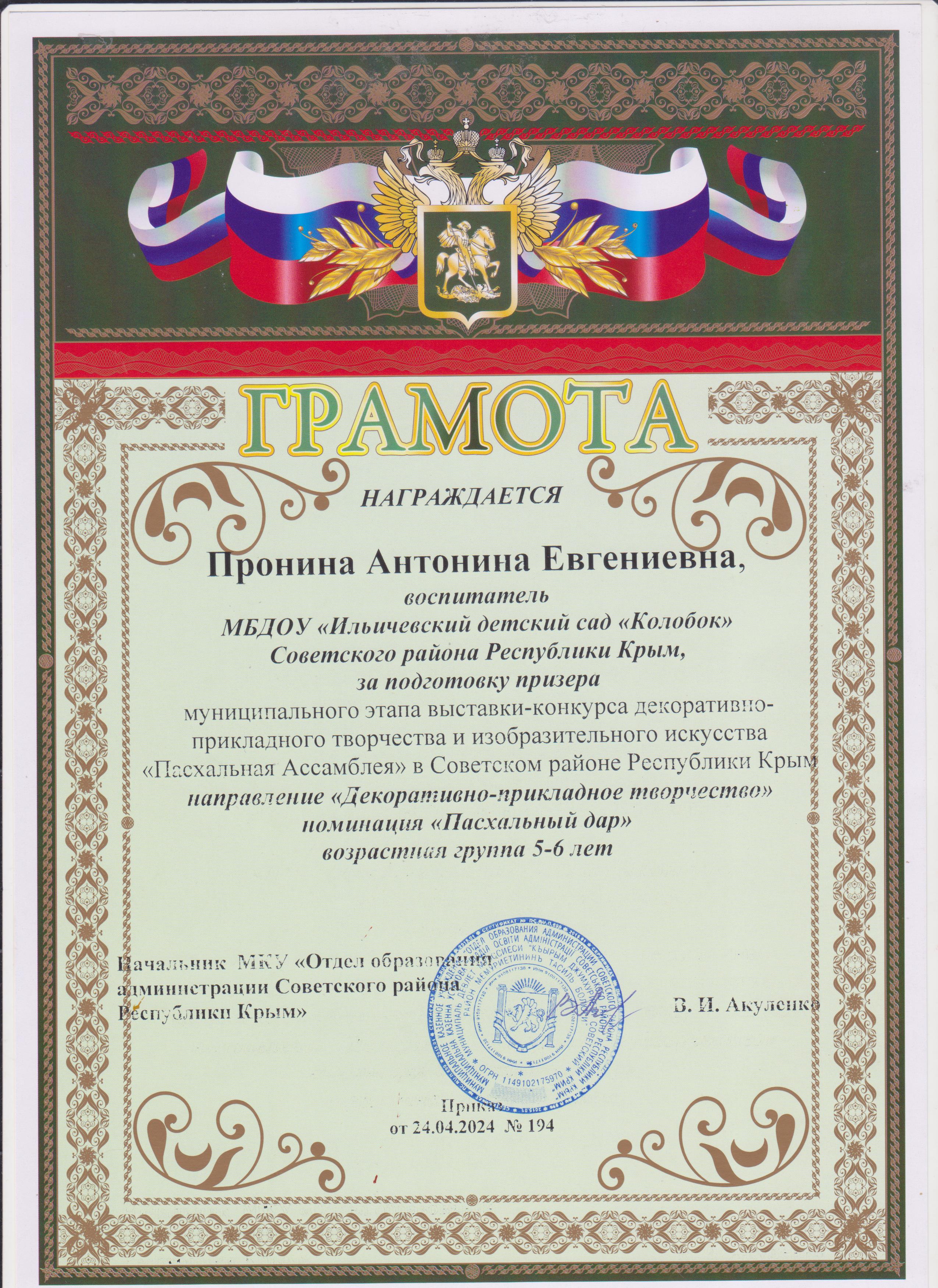Муниципальное бюджетное дошкольное образовательное учреждение «Ильичевский детский сад «Колобок» Советского района Республики Крым